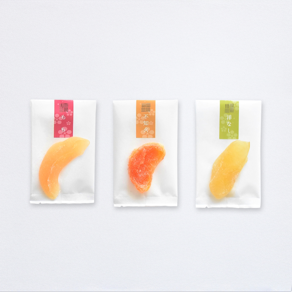 すべて国産の完熟フルーツを使用して素材の風味をしっかり残したセミドライフルーツです。 セミドライフルーツ3種類(もも、みかん(不知火)、洋なし)が入ったセットです。